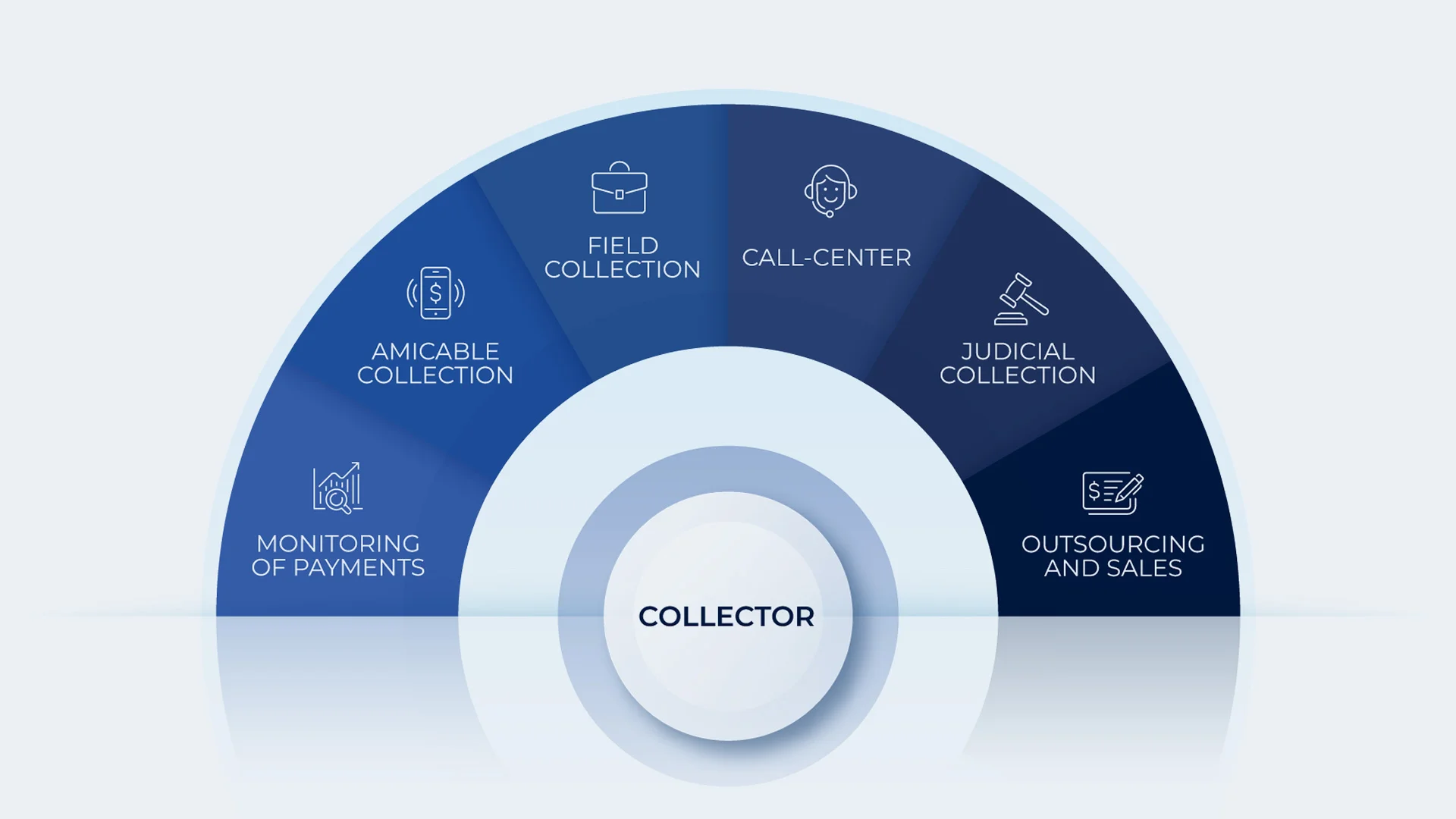 Modulen stödjer primära och sekundära fordringsägare i storskalig hantering av indrivningsprocessen. Genom innovativ digitalisering underlättar systemet förvaltning av din fordringsportfölj på ett automatiserat sätt med hjälp av en arbetsflödesmotor. Collector erbjuder en heltäckande lösning inom hela påminnelse, inkasso och verkställighetsprocessen men kan även fungera som ett stödsystem för kundens befintliga lösningar och delar av processen som kräver förbättring.